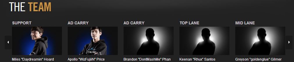 Only the bottom lane of Team Coast will remain while the jungler has not yet been announced, despite Joshua 'NintendudeX' Atkins still being on the team's contract. The duo of Miles 'Daydreamin' Hoard and Apollo 'WizFujiN' Price will remain on Team Coast while the Top lane will be occupied by former Team Curse member Keenan 'Rhux' Santos.