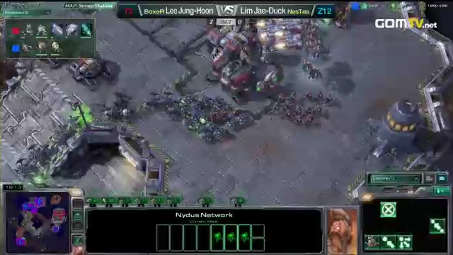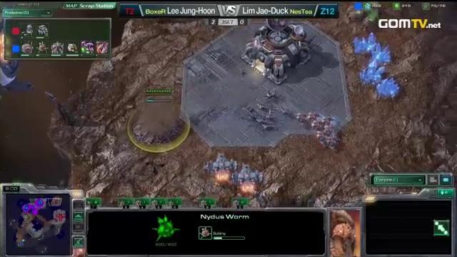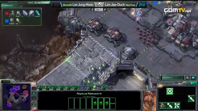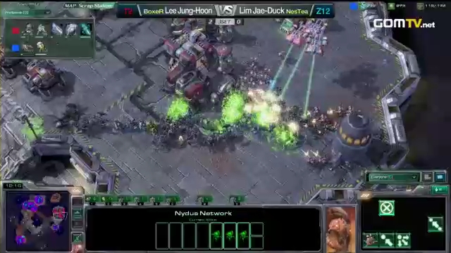 | Once again, NesTea would go Hatchery first, this time on a much safer map to do so on. BoxeR would also opt for a fast expansion, but to the island expansion instead of his natural. Then to follow-up, he would build double gas to continue teching with his expansion. In an interesting move, BoxeR decides to go double Engineering Bay to upgrade his infantry armor and attack faster. It would then be a race to the mid-game with both players focusing on getting their economies up quickly, but it wasn't until NesTea scouted out BoxeR's island expo that things would get interesting. Realizing that BoxeR had established an expo already, NesTea decides to use a Nydus Worm to attack the island expo. His Overlord overlooking the island expo would barely escape being shotdown by a Viking before NesTea could place down a Nydus Worm. The worm would finish, but only half a dozen or so Zerglings would slip through before the worm fell to SCVs. BoxeR would send over two Vikings and a dropship full of Marines to stop the Zerglings while a second worm attempted to burst onto the island. Being unable to break into the island expansion that was a natural fortress, NesTea shifted his attention to BoxeR's main. BoxeR would offer a small amount of offence by attempting a small drop and retreating fairly quickly. However, NesTea lays down a worm at BoxeR's natural expansion and then proceeds to send over his Baneling, Zergling, and Roach army. This would prove to be a fatal Baneling bust as NesTea would simply just trample down BoxeR's wall and into a base that had Marines with no stim or shields researched. BoxeR was simply left helpless as Roaches were left to finish off the rest of his base. Game 3 and the first game of the match would go to NesTea. | ||||||||||||||||||||||||