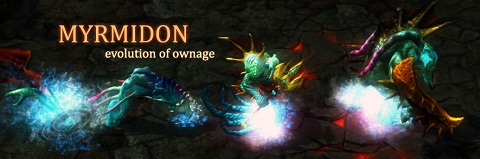 Myrmidon transforms himself, exchanging his ranged attack for more durability and power. In his transformed state, Myrmidon attacks at melee range, dealing magic damage to and slowing the target with each hit.