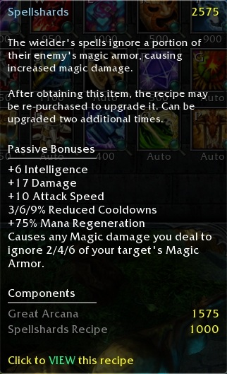 Along with HoN 2.0 a new item was introduced, Spellshards. The item is an offensive caster item which serves as a good alternative or complement to Staff of the Master, buffing more damage and reducing the cooldown of nukes even further.
