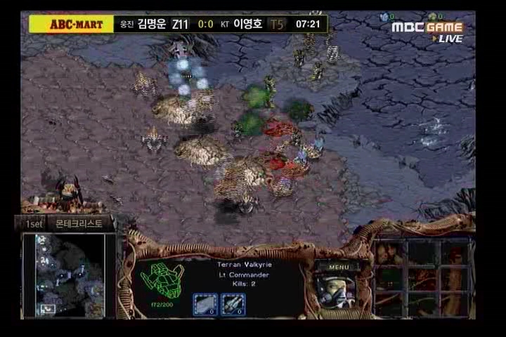 In the opening set on Monte Cristo Flash went for a Valkyrie build to hard counter Zero's mutalisks but as his Armory and Starport got scouted, the terran had to take swift actions. He pushed Zero's third with whatever marine/medic army he had (not excessively large) but managed to break through the line of Sunken Colonies thanks to his Valkiries which took care of Zero's fliers. As the third died, the Zerg typed the gg.