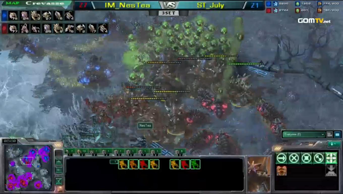 And suddenly what started as your everyday normal ZvZ turned into an inspiringly funny late-game madness where both players had Ultras, massive numbers of Infestors, Roaches and Spine Crawlers and the onslaughts that occurred were totally sick. The only thing that went wrong was July's overcommitment during one of his attacks where he charged straight into the massive Spine Crawler wall of NesTea only to lose his ultras and consecutively the game.