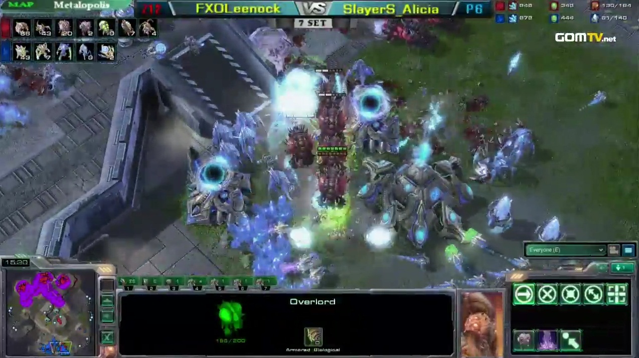 Alicia opened with a DT expand, hoping to deny Leenock's quick third. To his disappointment, Leenock was able to get an overseer out in time and completely deny the tech. Alicia followed this up with a blink rush but was again too late - the infestors were there to destroy everything and thus Leenock got the green light he needed to go on the offensive. His lings and banelings came from every side - they ran to the front, got dropped into the main and were bombed upon the few stalkers that survived the attack from earlier. With his base in ruins, Alicia gg-ed, saying goodbye to his Code S dreams for next season.