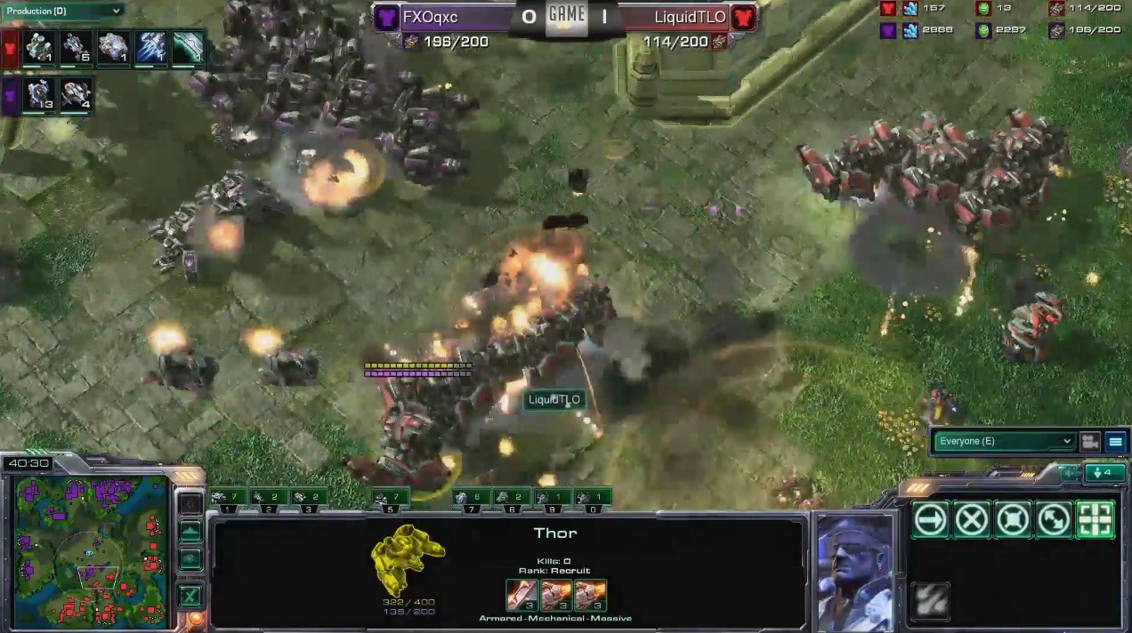 By looking at QXC's play one can also see the importance of army compositions and catch the timings for when it is wise to tech switch and the exact process of how to it. His large viking count and mixed-in thors gave him the edge in the early game, allowing him to stay safe until he had enough resources to start production of BCs. Which, as we know, counter mass thor perfectly well.