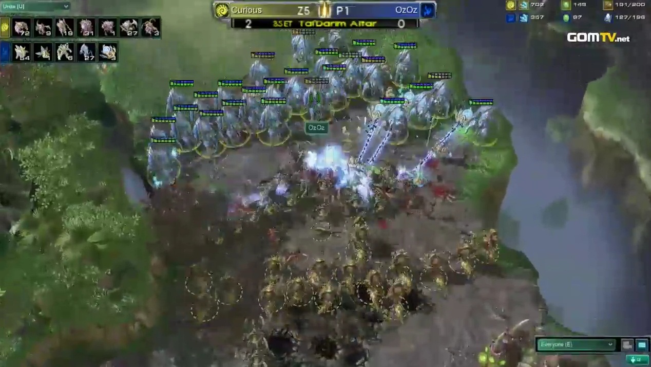Oz's persistence about sticking to those ridiculous and easily predictable gateway rushes is strange to say the least. Both set 2 and 3 reminded me of the previous encounter between Oz and Curious in the GSTL Season 1, where the protoss almost lost the game after gift-wrapping all his sentries in the exact same way. What's even more peculiar is that I am sure Oz knows that PvZ has developed a lot throughout the recent months (due to both patches and newly created playstyles) and he still played the way he did - a behaviour unbefitting a Code A grand finalist.