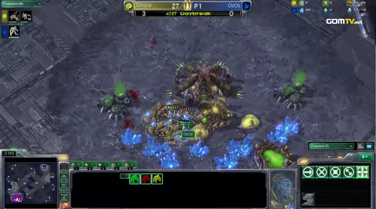 By that time one could see that Oz was falling apart, because his decision to go for a proxy double gate in the most important match of his GSL career would seem particularly odd. Short story shorter - Curious managed to cancel his fast hatchery in time to throw two spine crawlers at his mineral line, putting himself in a state of utmost safety, which brought him the 4-0 victory and the much desired Code S spot.