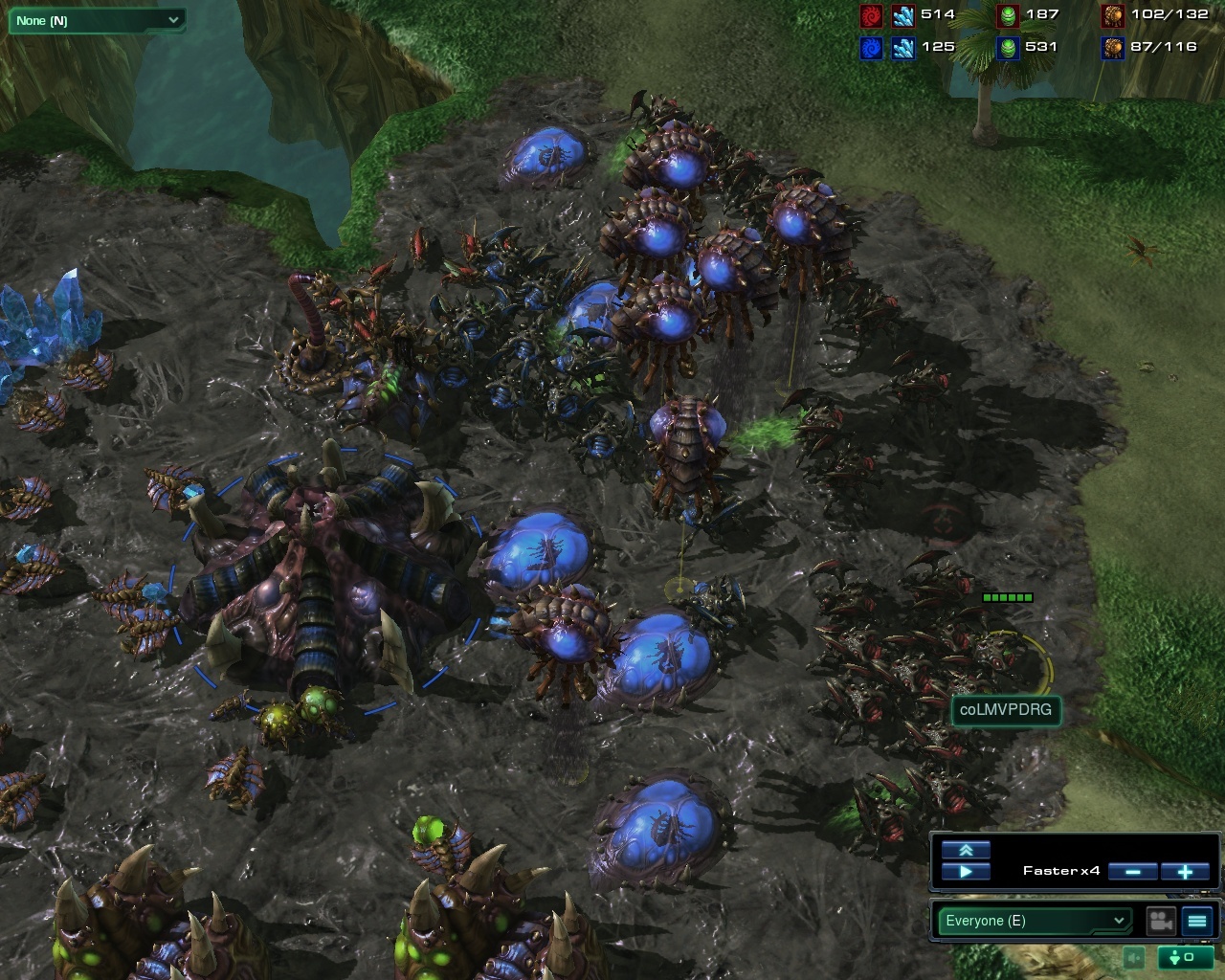 Fortunately for DRG, he was able to win the roach war on Dual Sight after fighting off FD's fast pool build and play a brilliant next set on Skakuras, dropping FruitDealers drone count to 14 after a nicely timed multi-pronged baneling/mutalisk attack.