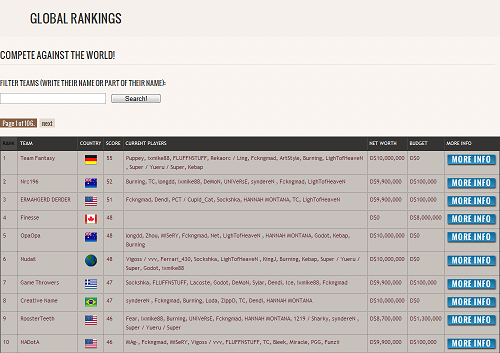 Wicked - We're amazed at the amount of community feedback and have been adding most of the things the people asked for. We readjusted the scoring system a bit, Added Country and Personal rankings, the possibility to follow other fantasy teams to check how you're doing compared to them and a list of most picked players so that if you don't know too much about the scene, you can use othe people's choices as a guideline!