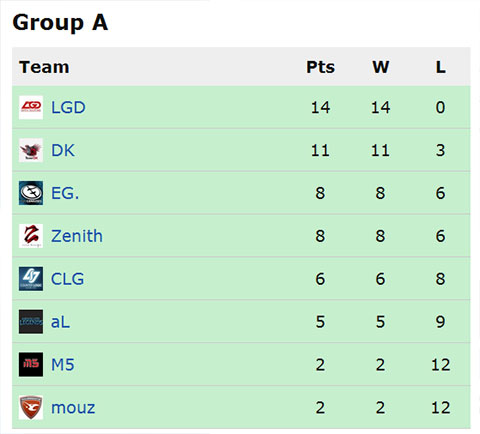 Group A of the preliminaries in Seattle is finished. LGD has topped the group, followed by DK. CLG has not made it to the upper bracket.