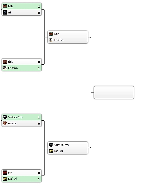 The first semi-finals will be between the winner of Cup #2, No Tidehunter and Fnatic.EU while Na'Vi will look to reclaim their former lead in Cup #1 against Virtus.Pro. Both games will be played in a best-of-one format and the Grand Final will be played in a best-of three.