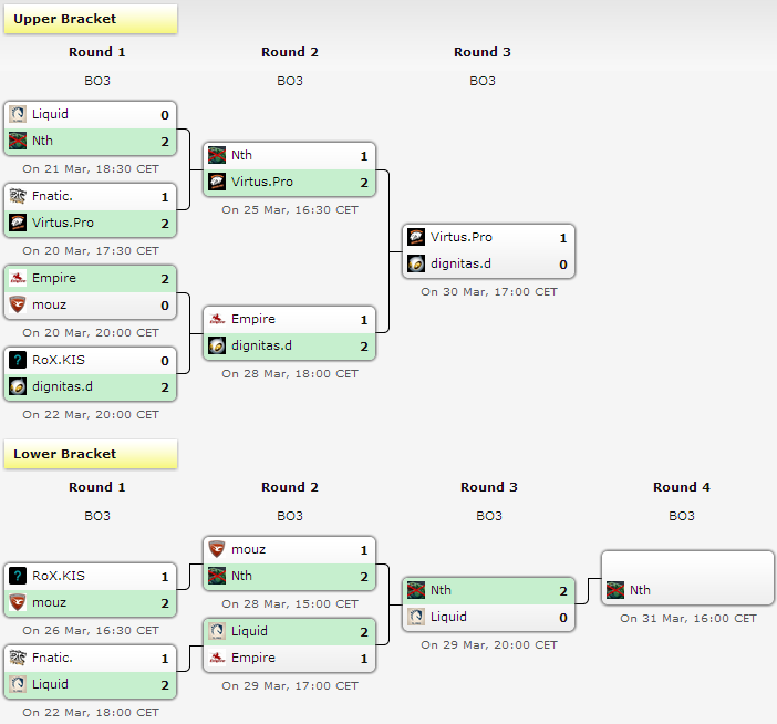 As Team Dignitas won the winner-bracket, they will have the advantage of one map in the best-of-five match in the grand final. Both the lower-bracket final aswell as the grand-final will be played tomorrow and casted by Tobi and Sheever.