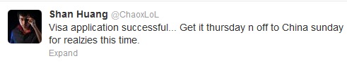 Earlier this week Chaox trip to China was postponed since his mother burned his Visa.