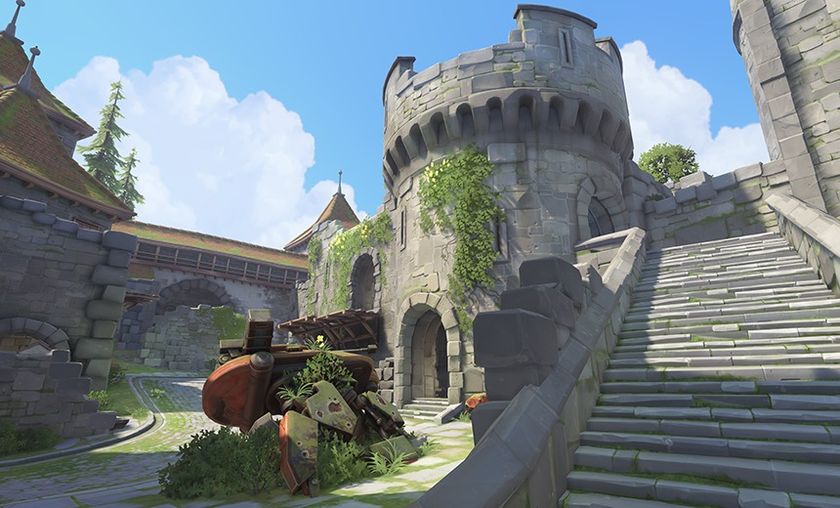 - Here you can see the defending team setting up next to the giant tower that is said to be the highest point in any Overwatch map. Shortly after that, you can see how the attackers are trying to break through.