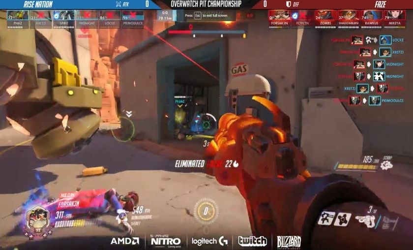 Rise Nation is eliminated from the Overwatch Pit Championship while FaZe moves on to face CLG in the next round of the Loser's Bracket.