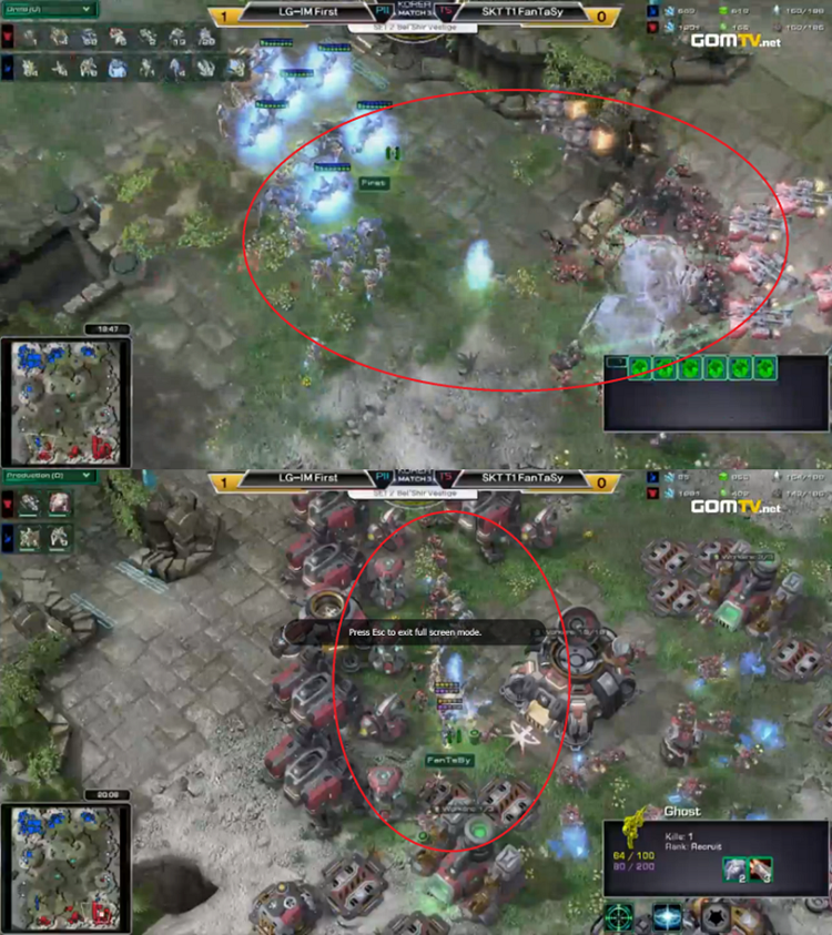 The four reasons listed so far put First in a great position to take the game, but the final reason ties it all together. First’s patient positional play is something we’ve seen from other top protoss players such as Rain. However, it’s the way he is able to utilize his constant aggression throughout the game but know exactly when to be patient with his main army. First establishes that fourth base and holds onto it, knowing that as long as Fantasy never gets a fourth, he can continue to cost-effectively trade against bio until he takes the game. First knows just how strong defender’s advantage is in this match-up, and it’s the reason he never made a full commitment to a frontal attack until it was a 100% sure-win.