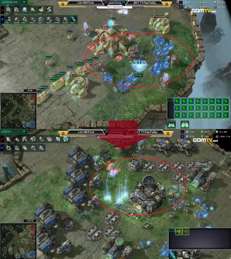Two different defensive builds from First with the same principle, don’t leave the terran alone when you’ve executed a perfect defense.