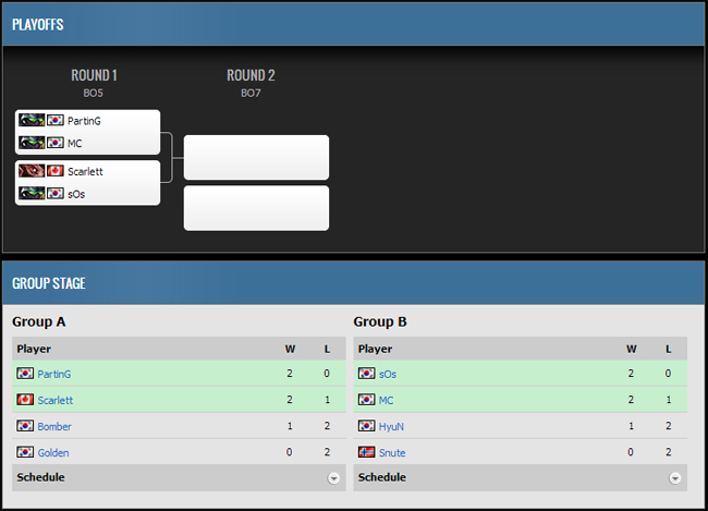 Many predict, expect and crave the all-Protoss final of PartinG versus sOs and it is indeed a likely scenario. PartinG will have to go through fellow Korean Protoss player MC first though while Scarlett will be standing as an obstacle in the path of sOs. The two challengers played well in the groups and are likely to contest for spots in the final later today. No matter who ends up going through to the final will surely deserve to be there.